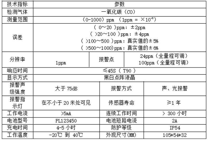一氧化碳檢測(cè)儀參數(shù)指標(biāo)